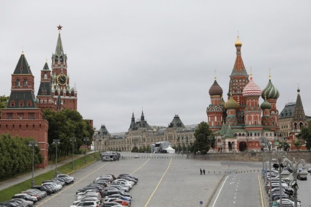 6月24日,执勤人员在俄罗斯莫斯科红场附近警戒。新华社记者白雪骐摄