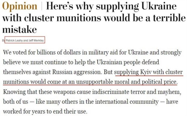 原美国中央情报局分管反恐事务的官员吉拉尔迪直言,美国政府向乌克兰提供集束弹药并不会改变战场形势,但却会对大量平民造成危险;大多数国家认为使用这类武器等同于战争罪,类似于使用毒气或化学武器,美国政府的这一决定表明了美方的伪善。