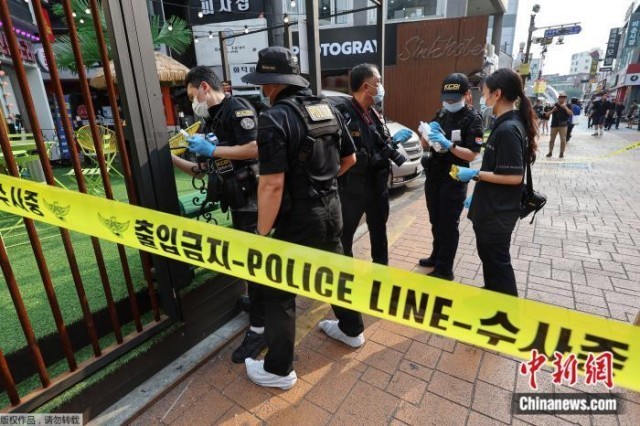 7月21日,警察在首尔西南区一地铁站附近调查袭击现场。