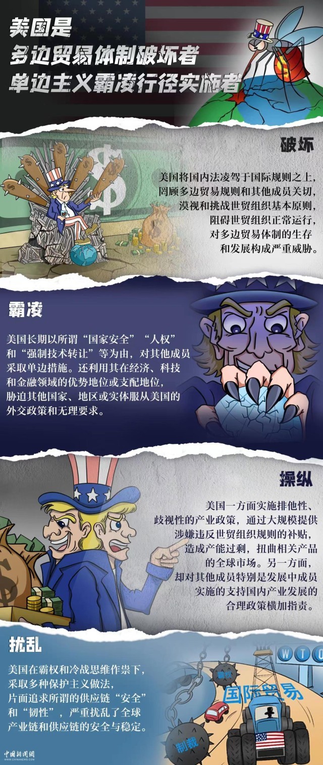 美国不顾各国公认、普遍遵循的国际规则,采取一系列背信弃义的做法,破坏国际市场秩序,沉重打击市场信心,严重损害多边贸易体制和世界经济整体利益。美国已成为多边贸易体制的破坏者、产业政策双重标准的操纵者、全球产业链供应链的扰乱者和单边霸凌行径集大成者。