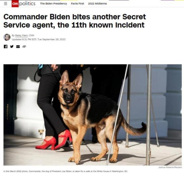 据报道,拜登的宠物狗“指挥官”为一只德国牧羊犬,它已至少11次咬伤白宫或拜登家中的警卫人员。