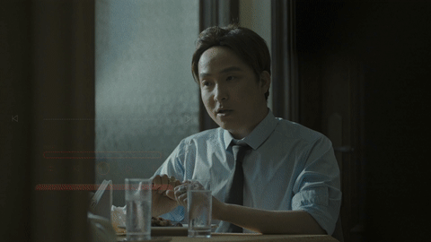 微电影一开始,美政客“上木”和女助理“那厮媞”来到了“哥来盯”烤肉店。“那厮媞”拍起美食根本停不下来,还把摄像头对向正在吃烤猪排的“上木”,以至于他露出不耐烦的表情,示意她为了两人的聊天安全赶快停止拍摄。一场有关监控的讨论也由此展开。