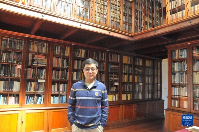 10月16日,南非科学院院士马寅哲在位于开普敦的南非天文台内接受新华社记者采访。新华社记者 王雷 摄