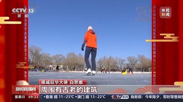 挪威驻华大使 白思娜:挪威人我们特别喜欢冬天,去爬山、滑冰、滑雪。我也很喜欢在这滑冰,因为这里是城市的中心,周围有古老的建筑,很多人在一起滑冰。