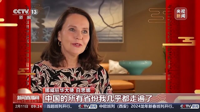 挪威驻华大使 白思娜:我在中国过了好几个春节,有的时候我就留在北京,有的时候又去别的地方,今年又留在北京。春节是关于家人,家人在一起,有很多好吃的,出去做好玩的事情。如果我们有机会跟中国人在一起过春节,也是帮我们了解一下中国人的家庭、你们喜欢做的活动。龙应该是有力量、繁荣,我期待龙年是一个好年。