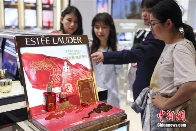 2024年2月7日,在海南海口的海控全球精品免税城内,化妆品牌推出龙年新春限定款吸引消费者。骆云飞 摄
