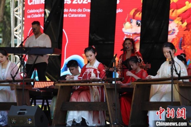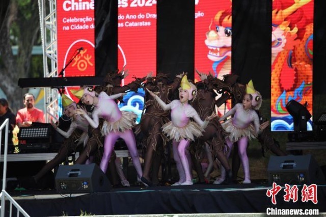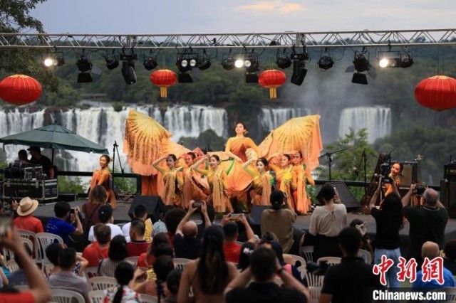 中新社巴西伊瓜苏2月12日电 题:巴西伊瓜苏的“中国春节”:瀑布为证 歌舞有情