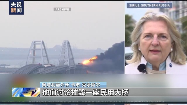 奥地利前外长 卡琳·克奈斯尔:录音披露的内容令人作呕。最让我感到震惊的是,他们讨论摧毁一座民用大桥。这些军官在他们的职业生涯应该都学习过,有关战争法、国际人道主义法的课程。这些课程通常会告诉人们,桥梁、医院、城市、民房等都不应该成为被摧毁的目标。