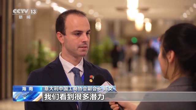 意大利中国工商协会副会长 陈文:我们看到很多潜力,关于人工智能等新技术,这些新技术为我们意大利公司创造了新的机会。所以我们正在努力做的是让公司直接接触这些信息和政策,让他们可以更好地在海南投资。
