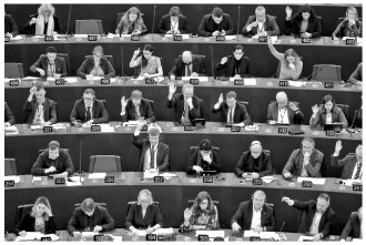 图为当地时间3月13日,法国斯特拉斯堡,欧洲议会通过《人工智能法案》。 CFP供图