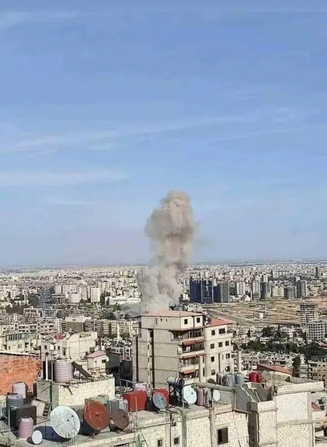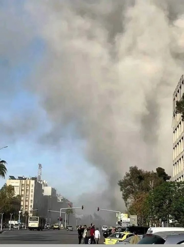 当地时间4月1日17时06分左右,以色列对大马士革Mazzeh区的一栋紧邻伊朗驻叙利亚大使馆建筑发动了空袭。图片来源:社交媒体