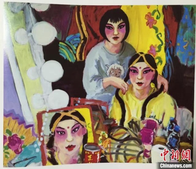 当地时间6月7日,澳大利亚艺术家温迪·沙普在其个人画展上展示她的中国戏曲题材画作《苏州昆剧院的后台》。 王心怡 摄