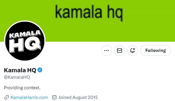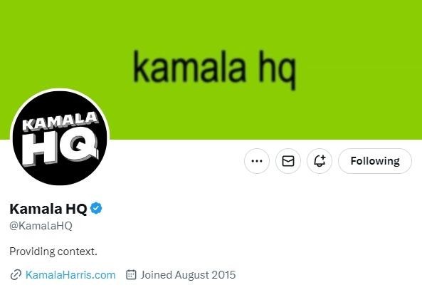 据报道,该竞选团队的账号更名后发帖称,“欢迎来到卡玛拉总部。这里是(卡玛拉·)哈里斯副总统竞选的官方快速反应页面。”