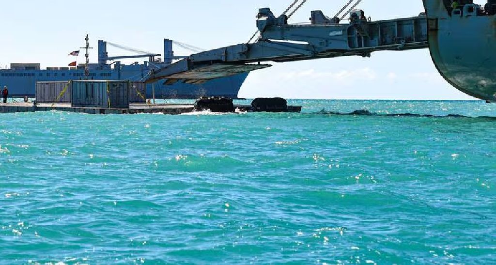 今年7月“护身军刀”演习期间,美军工程兵搭建临时码头。 图片来源 美国陆军