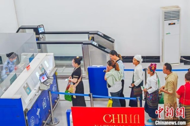 图为旅客在打洛口岸排队候检。打洛边检站 供图