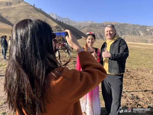 10月21日,“中国有约·相约新疆”2024国际媒体采访活动走进阿克苏地区,来自俄罗斯、意大利、比利时等9个国家的自媒体创作者们,来到位于托木尔峰脚下的天山托木尔景区·塔村,感受这里的旅游热度。