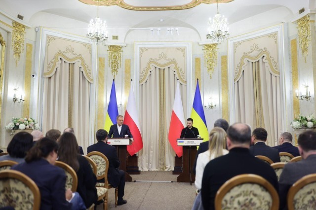 当地时间12月17日,乌克兰总统泽连斯基与波兰总理图斯克在乌西部城市利沃夫会晤。