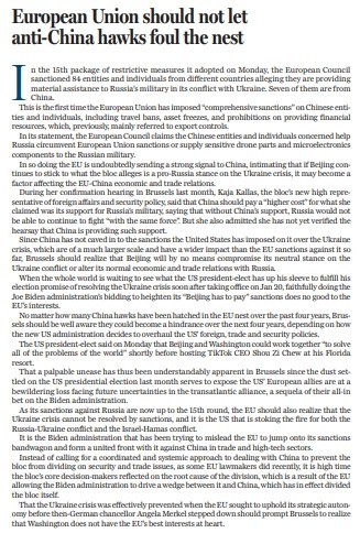 原标题:European Union should not let anti-China hawks foul the nest