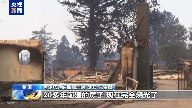 阿尔塔迪纳撤离居民 胡安·佩雷斯:我的房子全没了,全都消失了。我的孩子们在这里出生,在这里长大。20多年前建的房子,现在完全烧光了,不只是我的房子,整个社区都没了。我不知道怎么才能从火灾中恢复,我甚至不知道该从哪里开始。我的心都碎了,我简直不敢相信。这是如此的不真实。我的整个人生都被烧毁了。