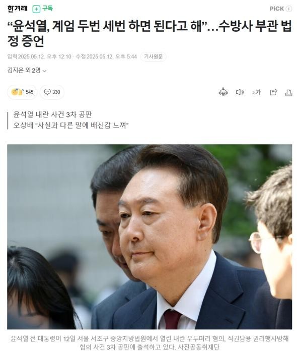中新网5月14日电 据《韩民族新闻》报道,当地时间5月12日,韩国首尔中央地方法院对前总统尹锡悦涉嫌内乱头目罪举行第三次庭审。韩军首都防卫司令部副官吴尚培(音)出庭作证时表示,自己曾在2024年12月4日凌晨听到尹锡悦说,哪怕国会通过解除戒严的决议案,他也可以宣布第二次、第三次戒严。