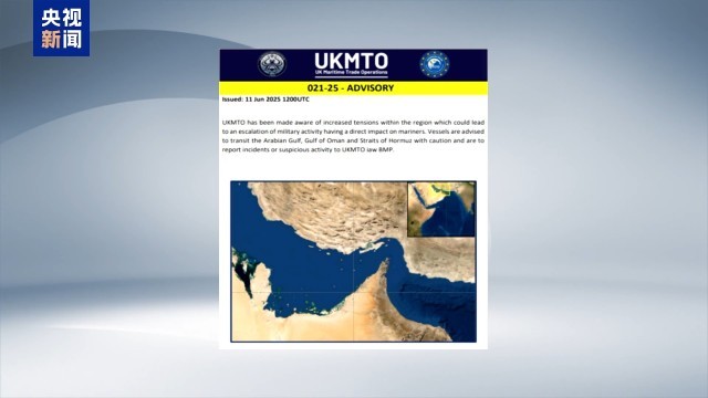 同一天,英国海事贸易组织(UKMTO)警告称,已注意到中东紧张局势加剧,“这可能导致军事活动升级”,可能影响航运,建议船只在经过波斯湾、阿曼湾和霍尔木兹海峡时要小心。