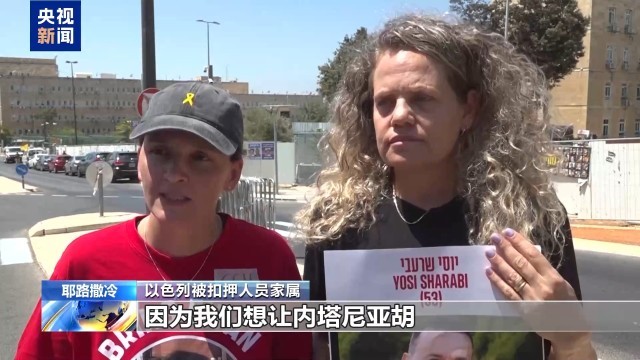 以色列被扣押人员家属:我们今天站在这里,在以色列总理办公室前,因为我们想让内塔尼亚胡签署停火协议,结束战争,结束50名被扣押人员的痛苦。