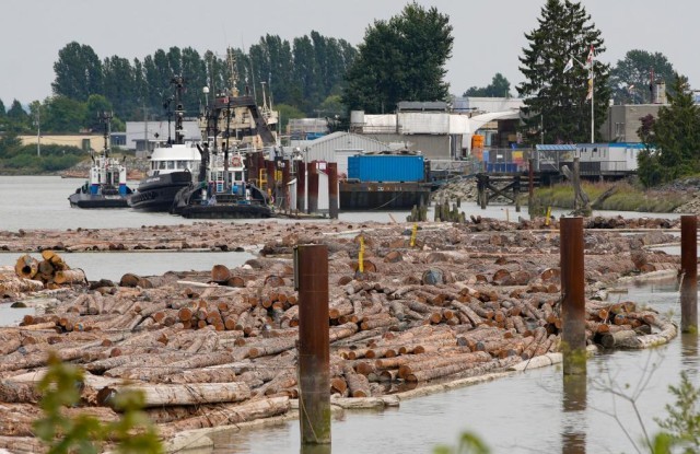 这是8月5日在加拿大里士满拍摄的弗雷泽河上的木材。加拿大总理卡尼5日宣布,受美国加征关税等因素影响,政府将提供12亿加元支持加拿大软木材行业发展。新华社发(梁森摄)