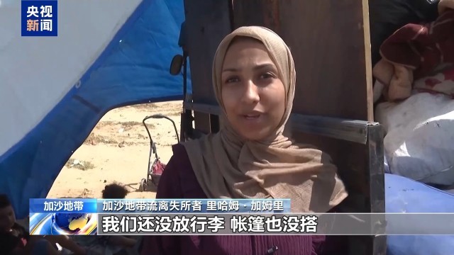 加沙地带流离失所者 里哈姆·加姆里:我们别无选择,只能保持乐观,抱有希望,必须要乐观。我们还没放行李,帐篷也没搭,就是盼着他们告诉我们要停火了,哪怕只有60天,只要能回去喘口气,稍微感受一下活着的滋味都好,我们希望真的能停火。