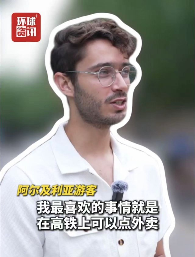 来自阿尔及利亚的游客在乘坐高铁时感叹,窗外所看到的一切很“酷” 。
