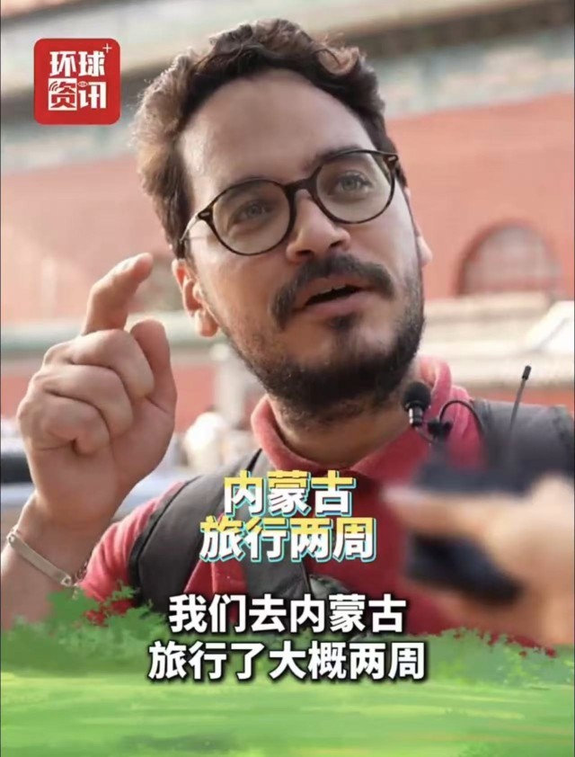 挪威游客兴奋地和记者分享他时隔十年再次来到中国的激动。