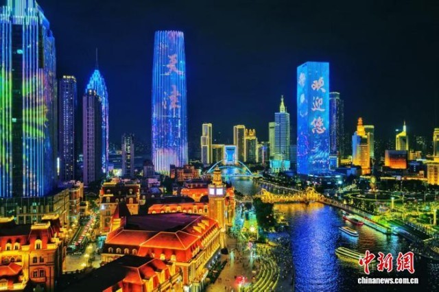 为迎接峰会,津城夜色愈发动人。解放桥畔,市民与游客纷纷举起手机定格美景。海河沿线216栋建筑、13座桥梁和8.2公里岸线完成整体亮化升级,推出“津门秀”等三大主题灯光演出,夜色下的天津展现出开放热情。