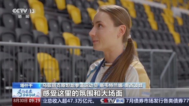 乌兹别克斯坦跆拳道运动员 斯韦特兰娜·奥西波娃:我们就在这里练习,感受这里的氛围和大场面,想象自己正站在正式的比赛场上。