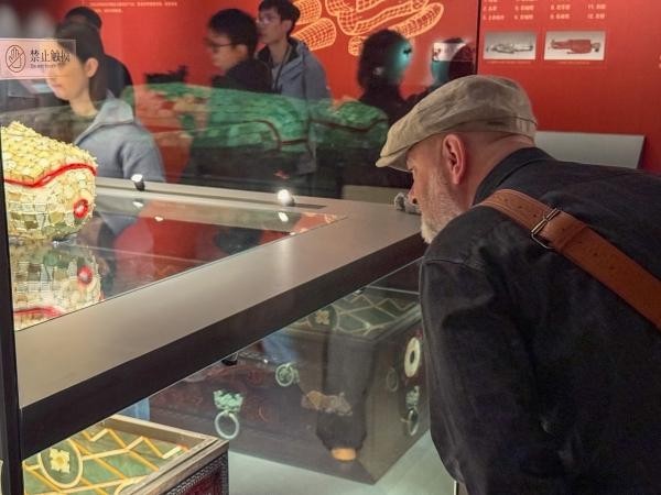 海外视频博主仔细观察汉代玉衣 摄影 陈小雨