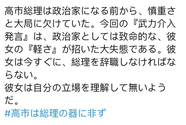 在社交媒体平台X上,高市早苗因其涉台错误言论,遭到大量日本网民的强烈批评。民众在“高市早苗不配当首相”“高市下台别干了”“高市糟糕透了”等多个热度标签下,表达对高市及其政府的强烈抗议,要求高市撤回涉台错误言论、辞去首相职务的呼声不断高涨。