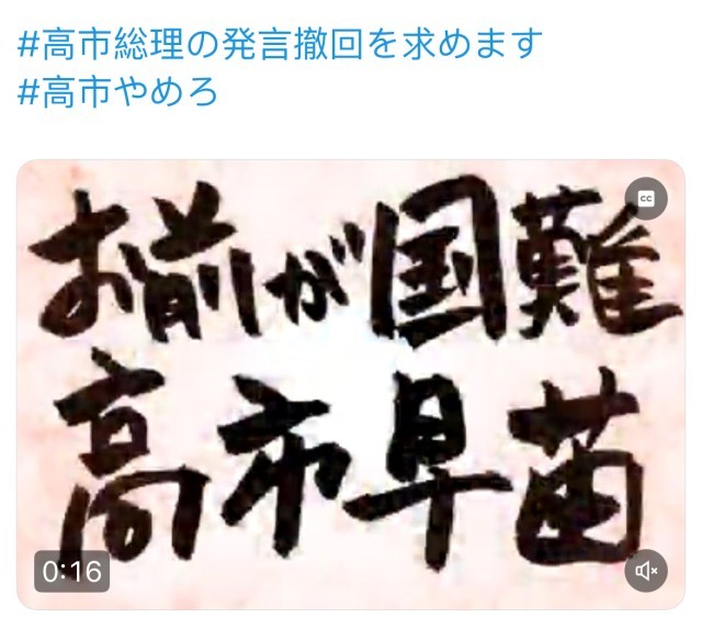 日本网友在社交媒体平台X上发布自己制作的视频“高市早苗,你是国难。”截自社交媒体平台X