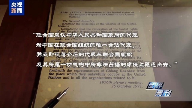 1971年10月25日,第二十六届联合国大会以压倒性多数通过《恢复中华人民共和国在联合国的合法权利》的决议,也就是第2758号决议,决议明确规定: