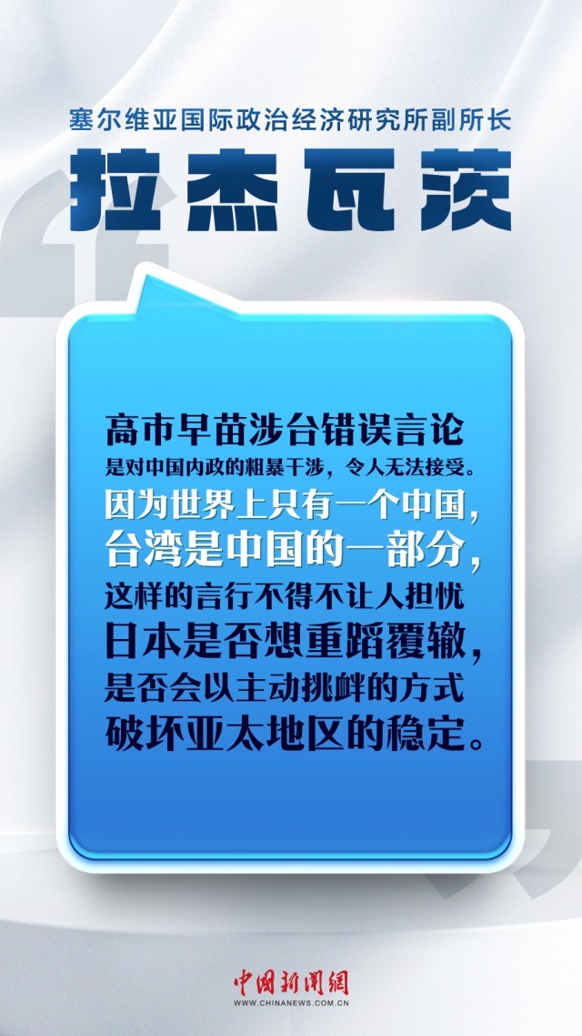 针对日本首相高市早苗在国会发表的涉台错误言论,近日,国际社会多方人士予以强烈批评。各方指出,此类表述无视历史与事实,向外界释放不稳定信号,破坏地区和平与安全。