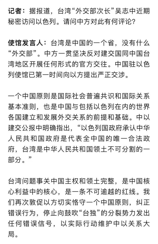 中国驻以色列使馆12月13日消息,中国驻以色列使馆发言人就台湾当局外事部门官员窜以答记者问。