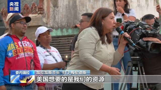 加拉加斯市长 卡门·梅伦德斯:美国想要的是我们的资源,他们想侵略委内瑞拉,但我们不会允许,我们决不屈服。我们在这里,随时准备好为保卫祖国而战。我们每天都在准备,因为我们是爱国者,因为我们热爱祖国,因为我们会早上起来走上街头去战斗。