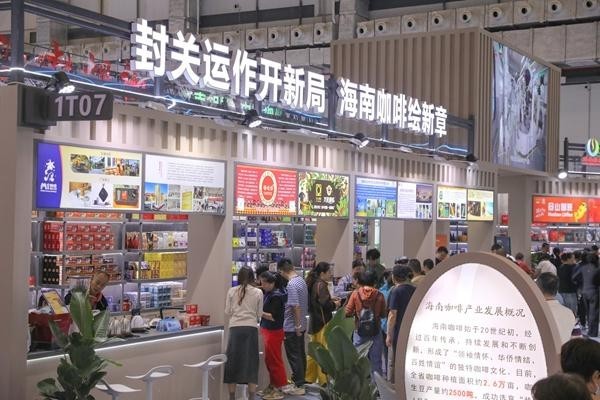 12月18日,海南自由贸易港正式启动全岛封关运作。图为12月15日,第28届中国(海南)国际热带农产品冬季交易会海南咖啡展厅吸引众多观众品鉴。视觉中国供图