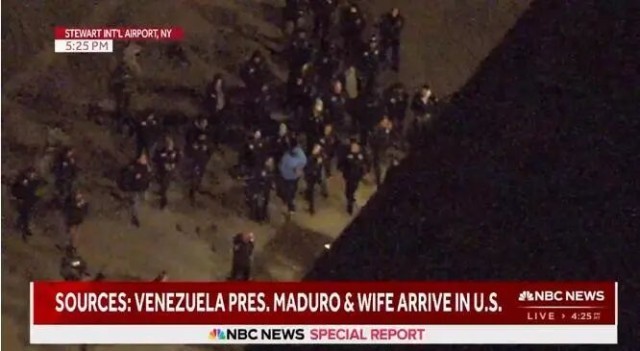 据美国全国广播公司(NBC)报道,当地时间1月3日下午,委内瑞拉总统马杜罗在美国纽约曼哈顿以北的一处机场走下飞机。