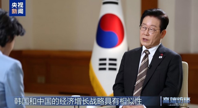 韩国总统李在明接受总台《高端访谈》栏目专访视频截图