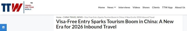 中国日报网1月16日电 2026年开年,中国入境游迎来强劲开局。数据显示,多地旅游目的地客流均呈现显著增长,适用免签政策入境的外国人达到29.2万人次,较去年同期增长35.8%。国际旅游行业媒体《旅行与旅游世界》网站(Travel And Tour World)持续关注中国蓬勃发展的旅游市场并在近日的报道中表示,在免签政策红利加持与国际连通性不断提升的双重推动下,中国的旅游格局正经历深刻转型,这一上升趋势亦凸显出中国作为全球旅游目的地的吸引力日益增强。