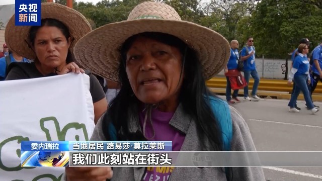 当地居民 路易莎·莫拉莱斯:我们此刻站在街头就是要告诉特朗普,你触碰了我们国家神圣不可侵犯的尊严。在亲眼看到总统归来之前,我们绝不会从街头撤离,我们要让总统回到自己的国家。