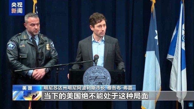明尼苏达州明尼阿波利斯市长 雅各布·弗雷:当下的美国绝不能处于这种局面,两个政府机构竟然在互相争斗。我们必须把话说清楚,我所看到的美国移民与海关执法局的行为令人感到恶心,无法容忍。如果说今年截至目前,明尼阿波利斯发生的大量枪击事件中相当一部分与移民与海关执法局有关,那这显然谈不上是在保障公共安全。