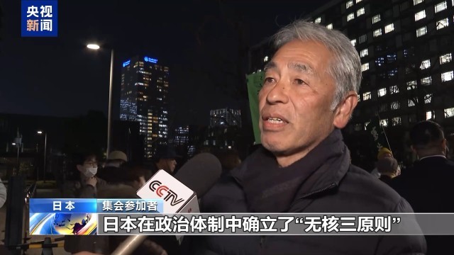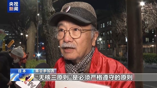 集会参加者:日本在政治体制中确立了“无核三原则”,并将其作为必须恪守的国家方针,然而高市却轻易地想改变它。我对此强烈反对,这是绝对不该做的事情。