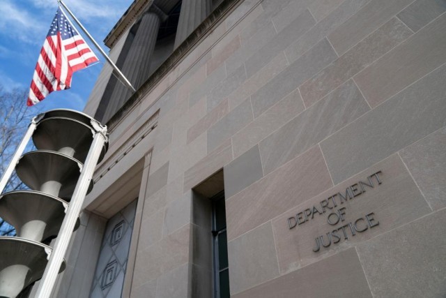 这是2022年3月10日在美国首都华盛顿拍摄的美国司法部大楼。新华社记者刘杰摄