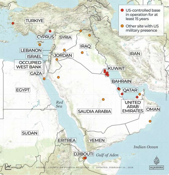 美军在中东地区有广泛军事存在。卡塔尔半岛电视台报道截图