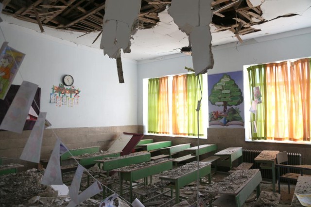 3月3日,在伊朗德黑兰市中心的沙希德·马哈拉提学校,教室房顶塌落,地面一片瓦砾。