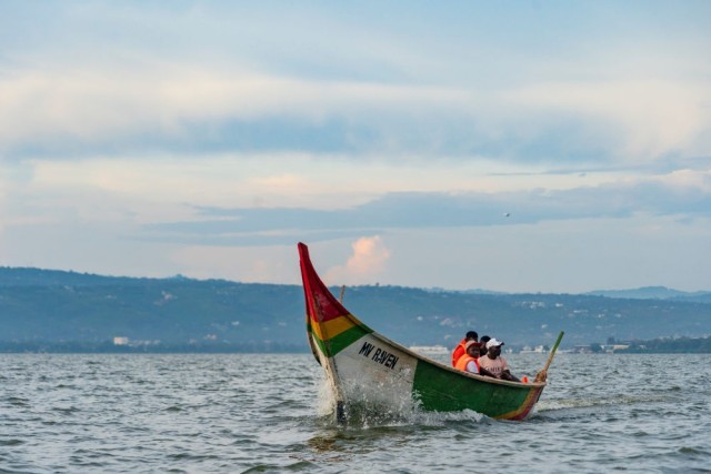 在肯尼亚基苏木,人们乘船在维多利亚湖上游玩(2026年2月27日摄)。